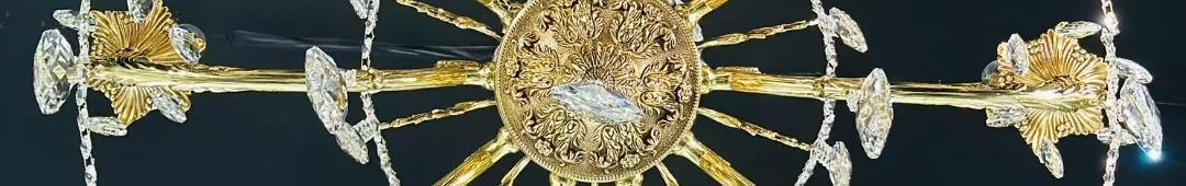 - Chất liệu: Thân đèn bằng đồng nguyên chất 100%, kết hợp pha lê K9 cao cấp, bền đẹp và hạn chế oxy hóa.